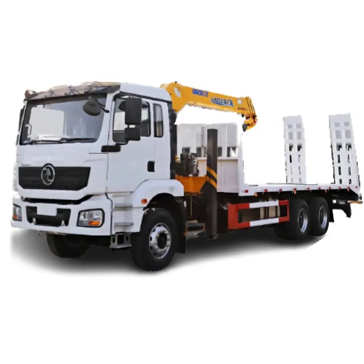 Shacman Right Hand 6X4 10 Wheels Flat Bed Truck with Rear Climb Ladder with 360 Rotary Telescopic Boom Crane