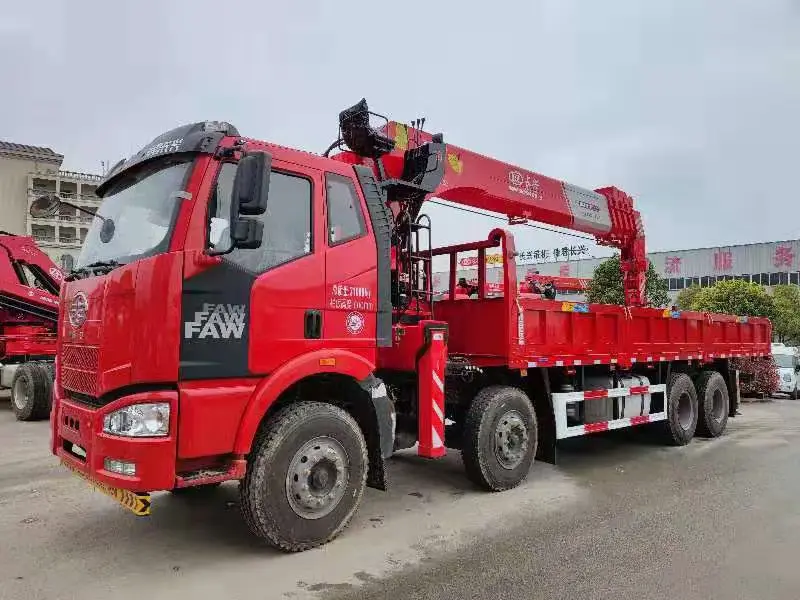 FAW Right Hand 8X4 12Wheels Cargo Truck with 16ton Straight Boom Crane