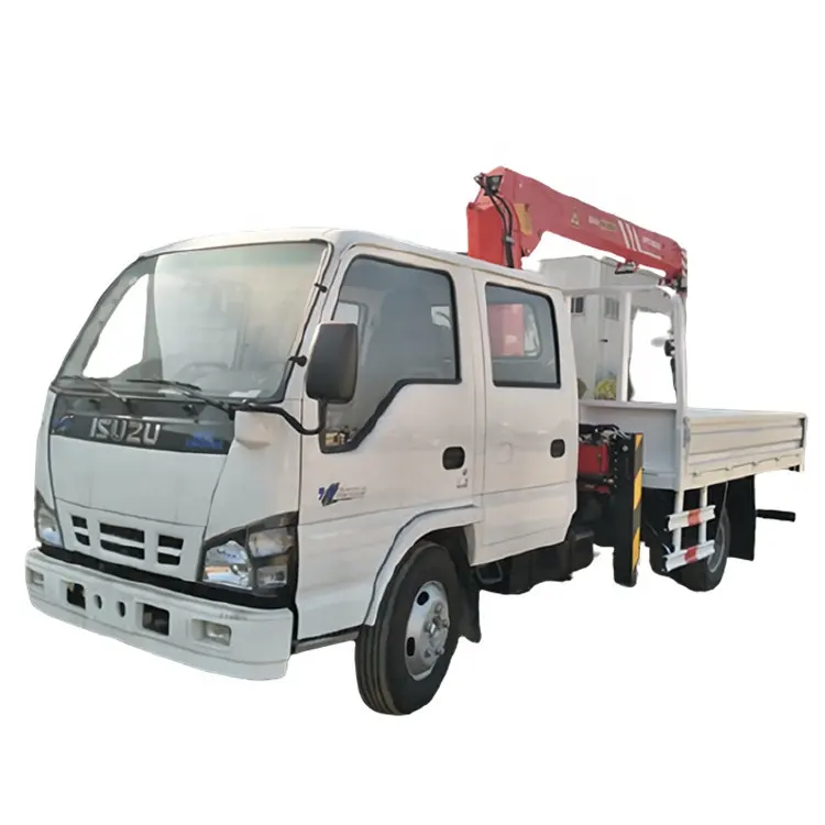 Isuzu Brand 4X2 6Wheels 2tons Double Cab Knuckle Boom Crane Crane Mounted on Cargo Truck Straight Arm Crane Truck