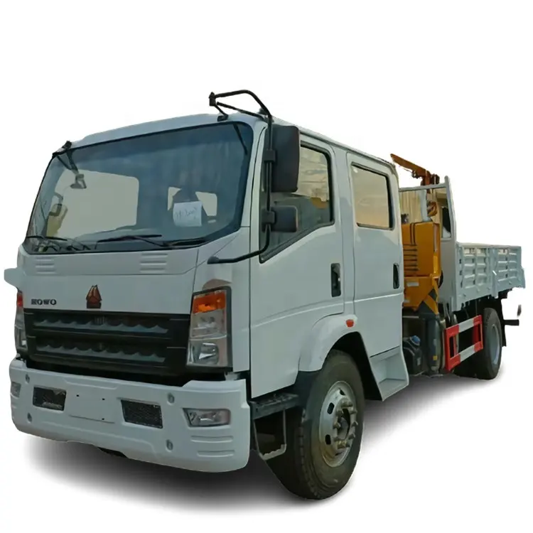 Sinotruck HOWO 4X2 Double Row Cabin Cargo Truck with 8ton Straight Boom Crane